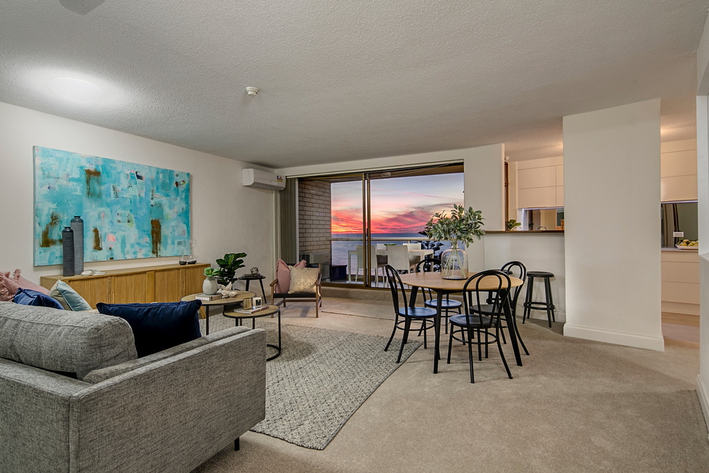 The casual living area is very spacious, and is beautifully presented with its more neutral beach tones, and flows out to the generous and protected ocean terrace.